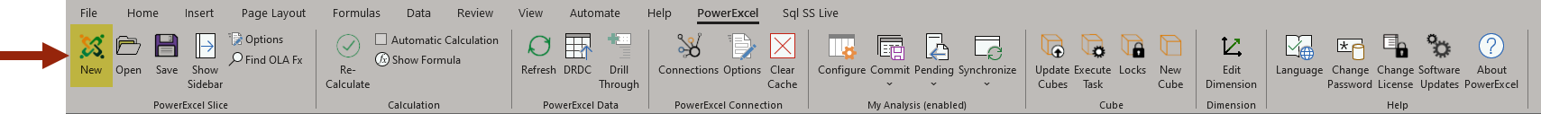 a. Go to the PowerExcel tab of the Excel ribbon and click on the New PowerExcel Slice icon.
