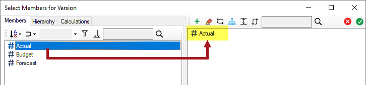 b. Click the Use Selected Members button (green checkmark button) to commit the changes.