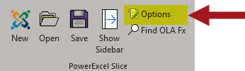 b. Click on Options on the PowerExcel Slice control group (see arrow in the image below).