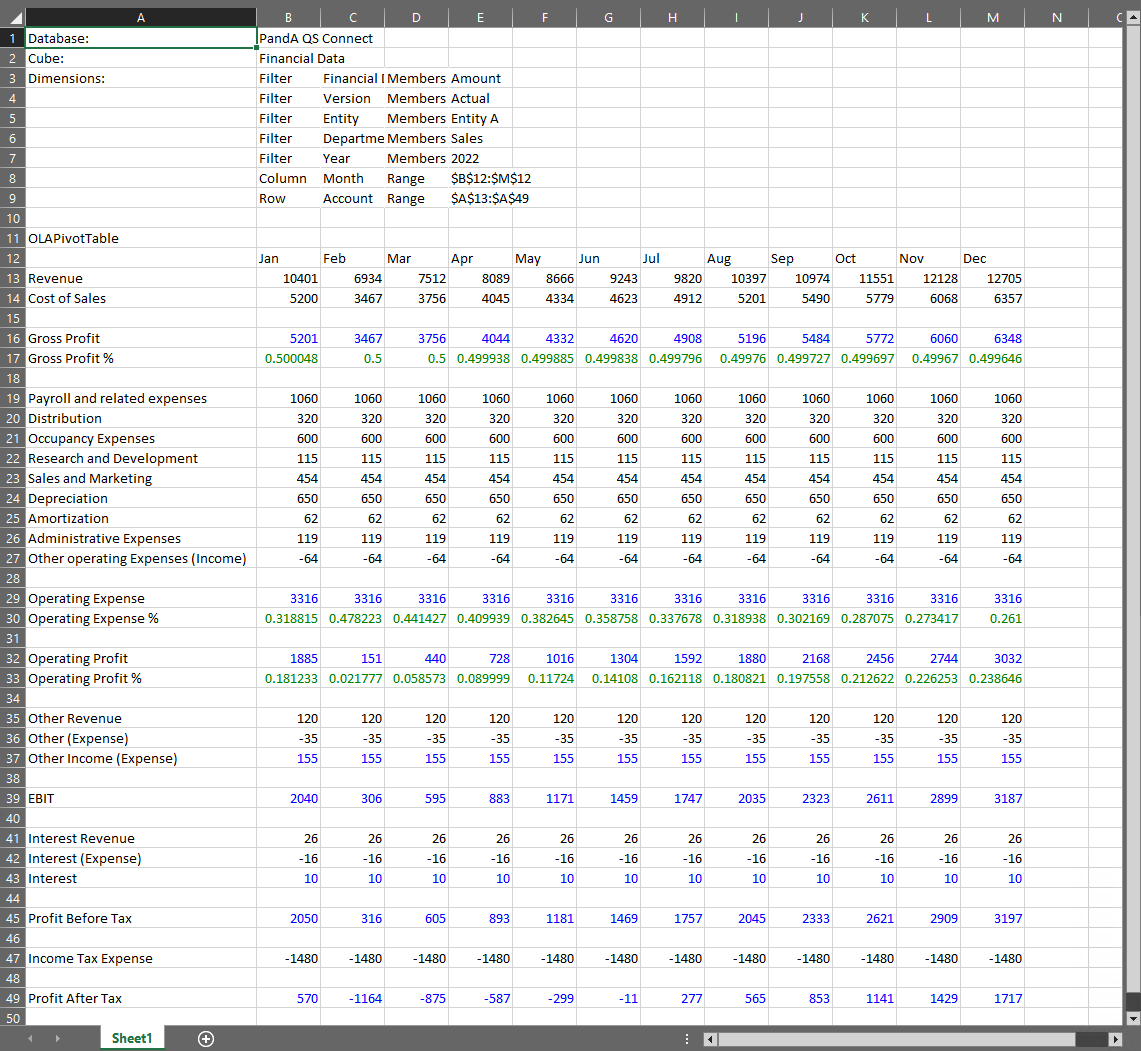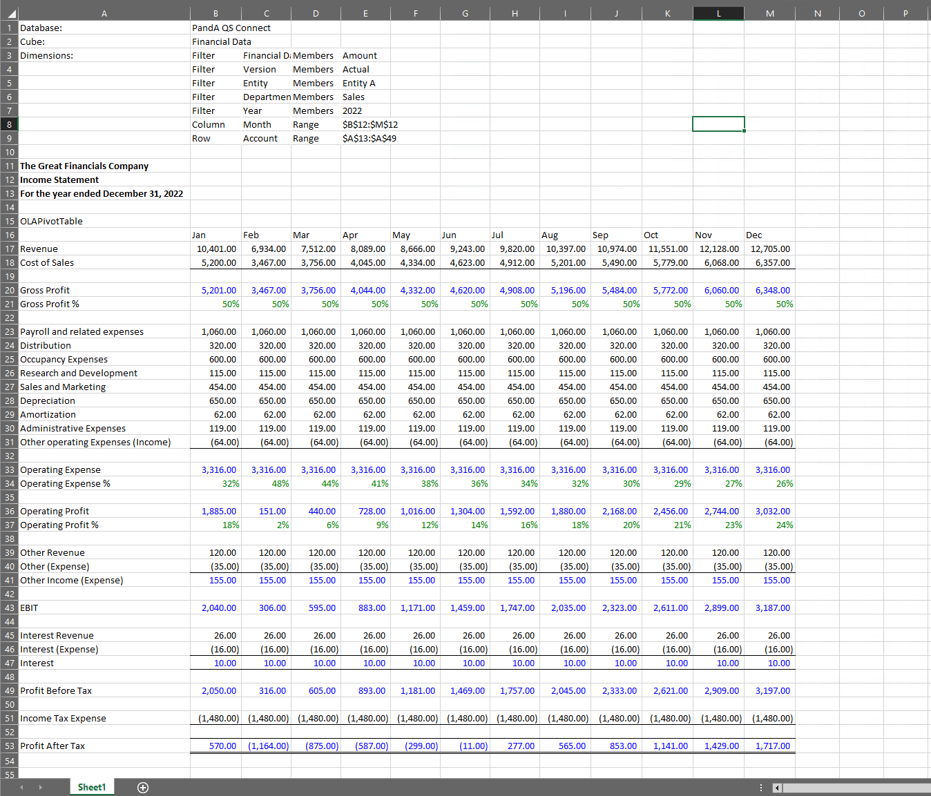 Next, you can create a basic Income Statement from the PandA model, one