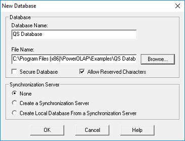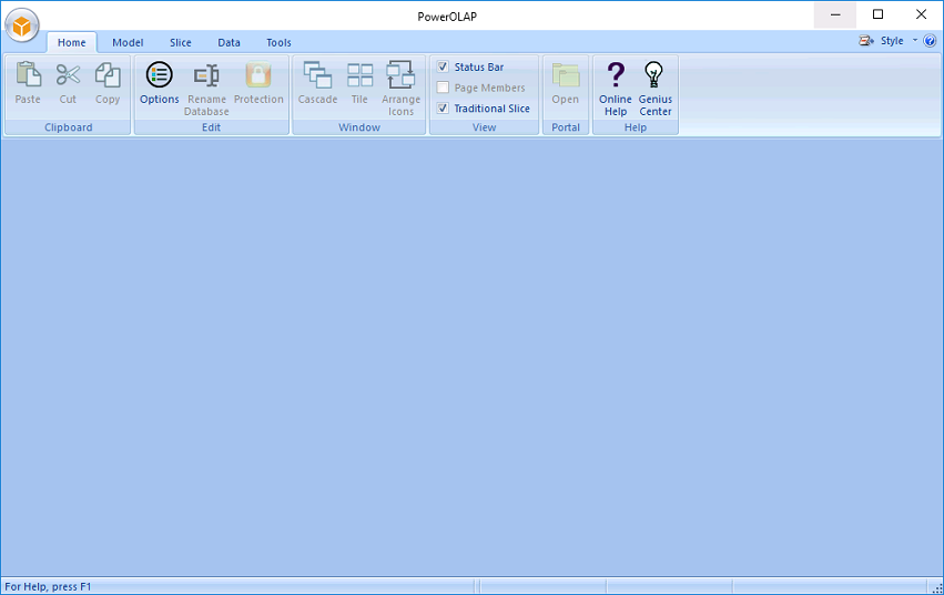 Creating a PowerOLAP database is the first step in developing an application to store and model your data. The PowerOLAP database file, which has an ".olp" file extension, will contain all the components of your model. As you will see, these components include Dimensions and their Members; Cubes; Cube Formulas; and Slices, which display your data. |
