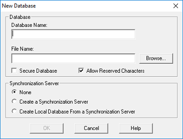 6. Notice the Secure Database and the Allow Reserved Characters checkboxes. Leave the default settings, unchecked and checked, respectively.