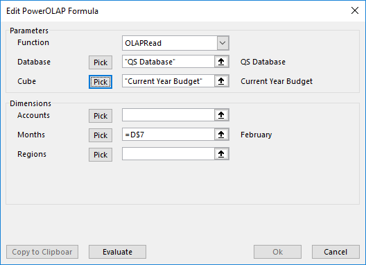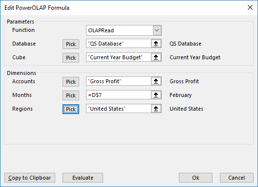 After you have made these choices, the Edit PowerOLAP Formula dialog box will look as follows:
