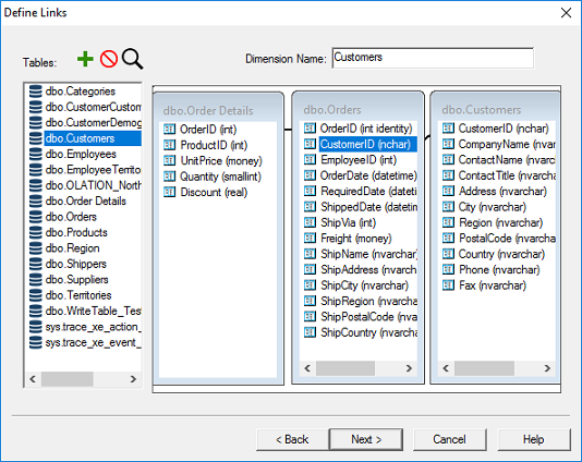 Notice that, dbo.Customers now appears in the Dimension Name text box at the top right.