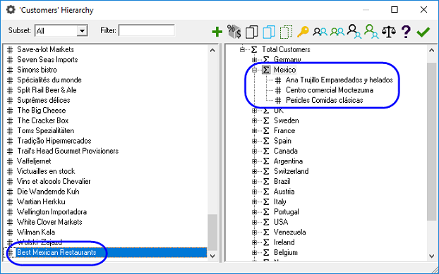 For present demonstration purposes, put the Rollup Best Mexican Restaurants into the Mexico hierarchy: