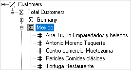 Note that all the Members of the Customers dimension are listed in the left-hand pane. At the top right, in the Rollups text box, you will type in a name for your own defined Rollup, then group the Members you want within the Rollup in the list box below. We will demonstrate this with an example. First, though, recall that the Customers hierarchy for the country Mexico presently is constructed as follows: