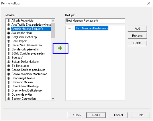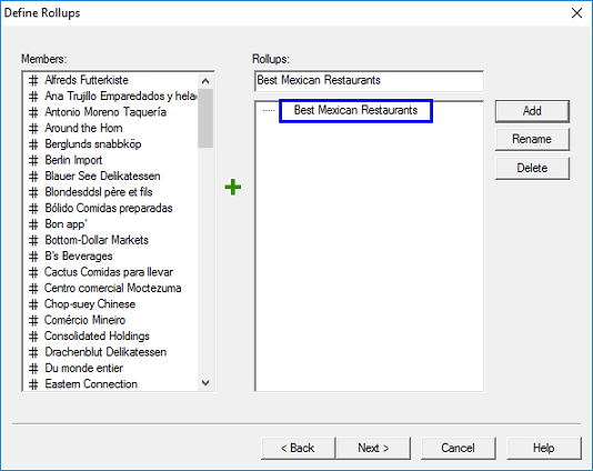 7. Click the Add button. Note that the Rollup name (Best Mexican Restaurants) now appears in the right-hand pane.