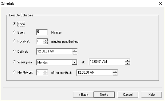 However, if you did not specify a particular period for the job to run, I.e., you selected None in the Execute Scheduler screen, then the job will only run once you execute it manually.